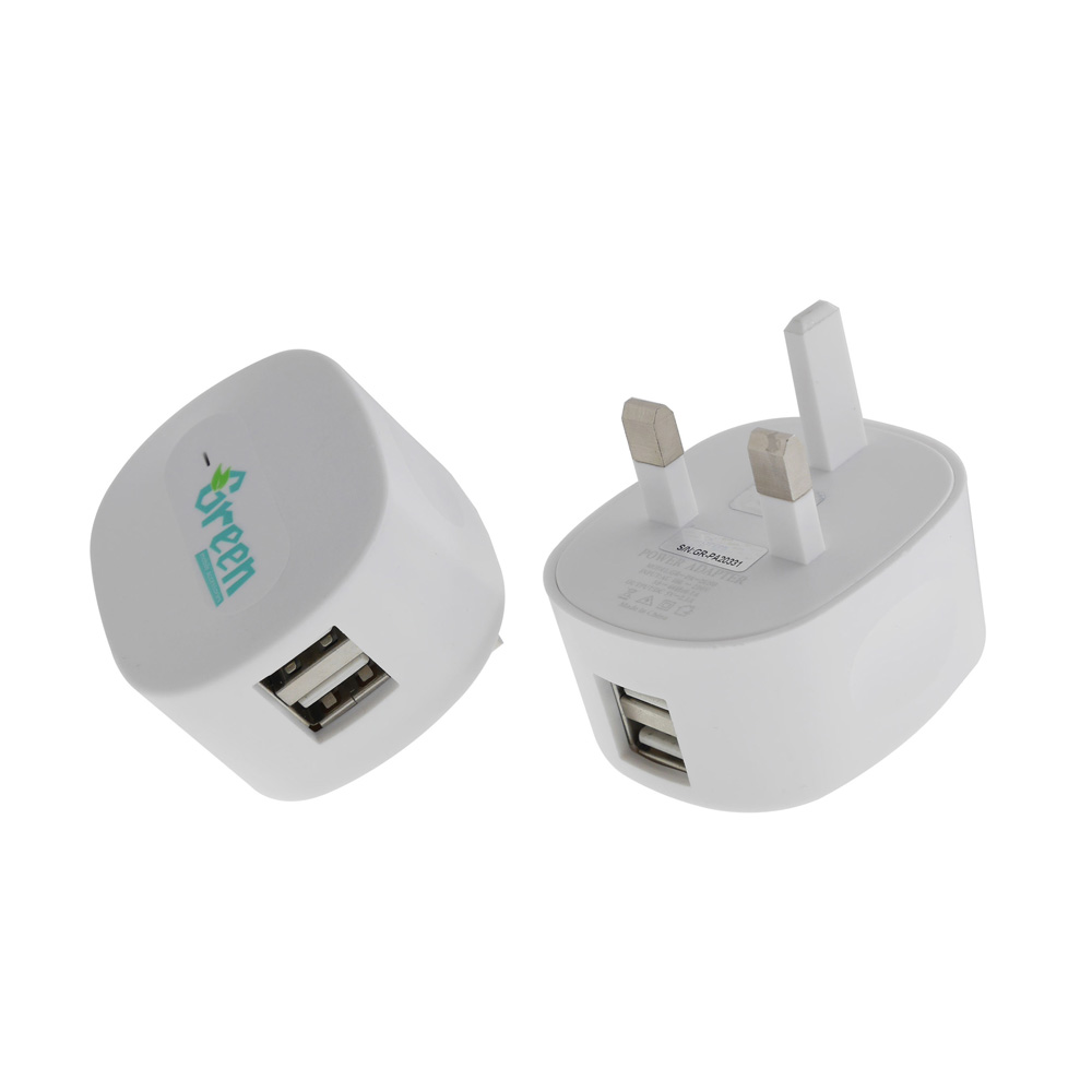 Model : GR-PA-2USB | Input : AC 100 - 250V | Output : DC 5V / 2.1A 2USB | Size : 58*48*28mm | Material : ABS+PC | Colour : White | Warranty : 12 Months